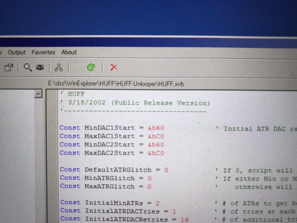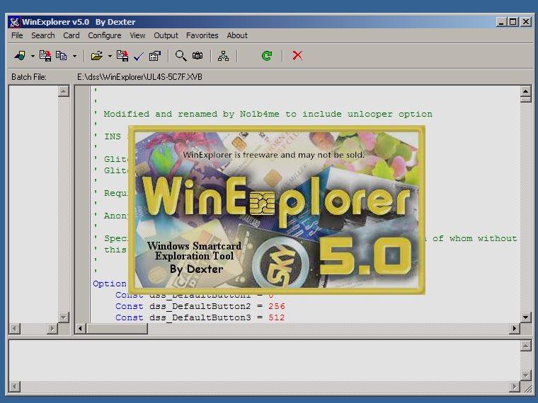 WinExplorer was a widely used tool for smartcard hackers, for writing “.XVB files”, VBScript programs that talked to smartcards or smartcard glitchers. Hackers would share, study, and modify an overwhelming number of .XVB files, a de facto standard for pirate satellite scripts.